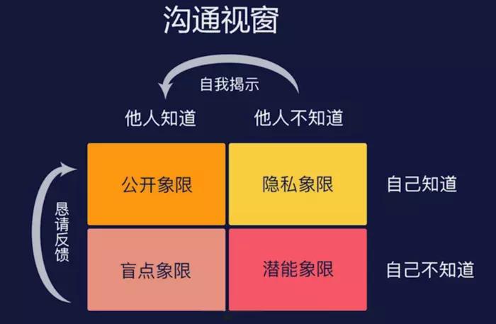 溝通視窗叫做喬哈里視窗(Johari Window),ohari窗口模型是一個簡單而有用的工具,用于改善自我認(rèn)知以及組內(nèi)個體之間的相互理解。