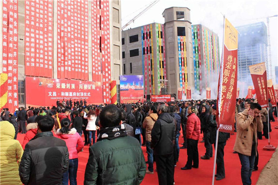 陜西傳媒網(wǎng)榆林頻道訊(宋歡 王東)12月20日,榆林天寒地凍,滴水成冰,不過盡管如此,位于榆林開發(fā)區(qū)“文昌和順嘉府”項目的封頂儀式現(xiàn)場卻熱火朝天。這里彩旗高掛,整個售樓部人聲鼎沸、熱鬧非凡?,F(xiàn)場圍觀的群眾不時地向身邊的人點頭稱贊:榆林的房地產(chǎn)業(yè)似乎真的要在這個冬天復(fù)蘇了。