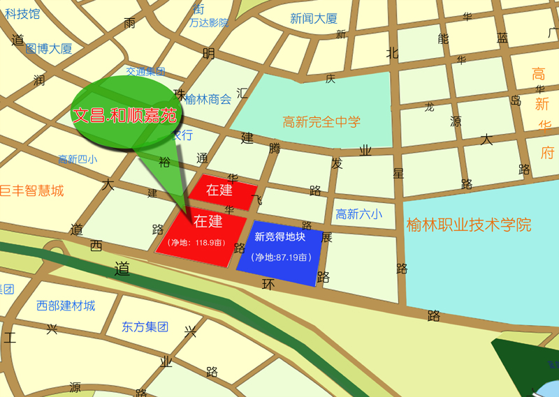 紅色部分為在建項目 文昌和順嘉苑項目/藍(lán)色部分為新競得地塊