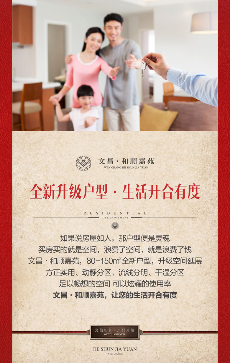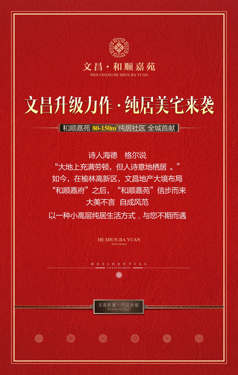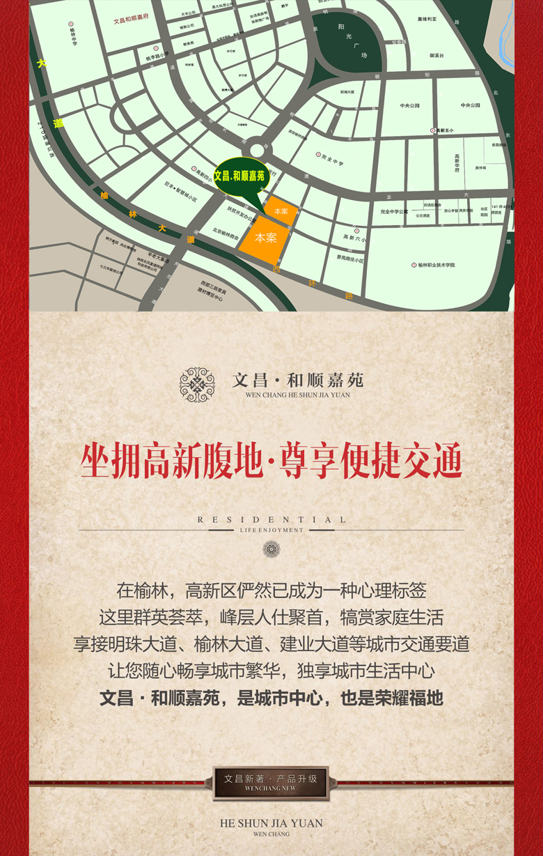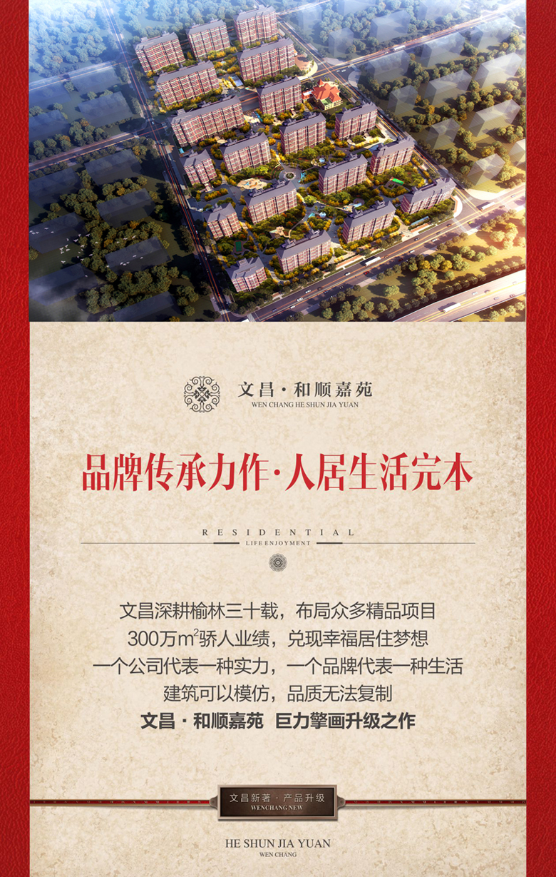 您一定期待已久 我們也一直在努力 盡心盡力打造又一部讓您稱心如意的作品 新年來了 金雞報曉 萬象更新 文昌人傾力為您奉上升級力作 ——<和順嘉苑> 位居高新 純居大盤 請您鑒賞!